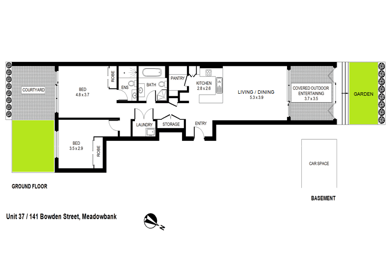 Two spacious bedrooms both with built-in wardrobes one with access to its private courtyard