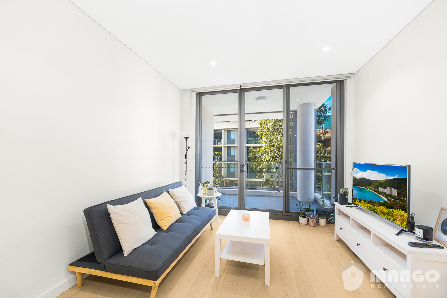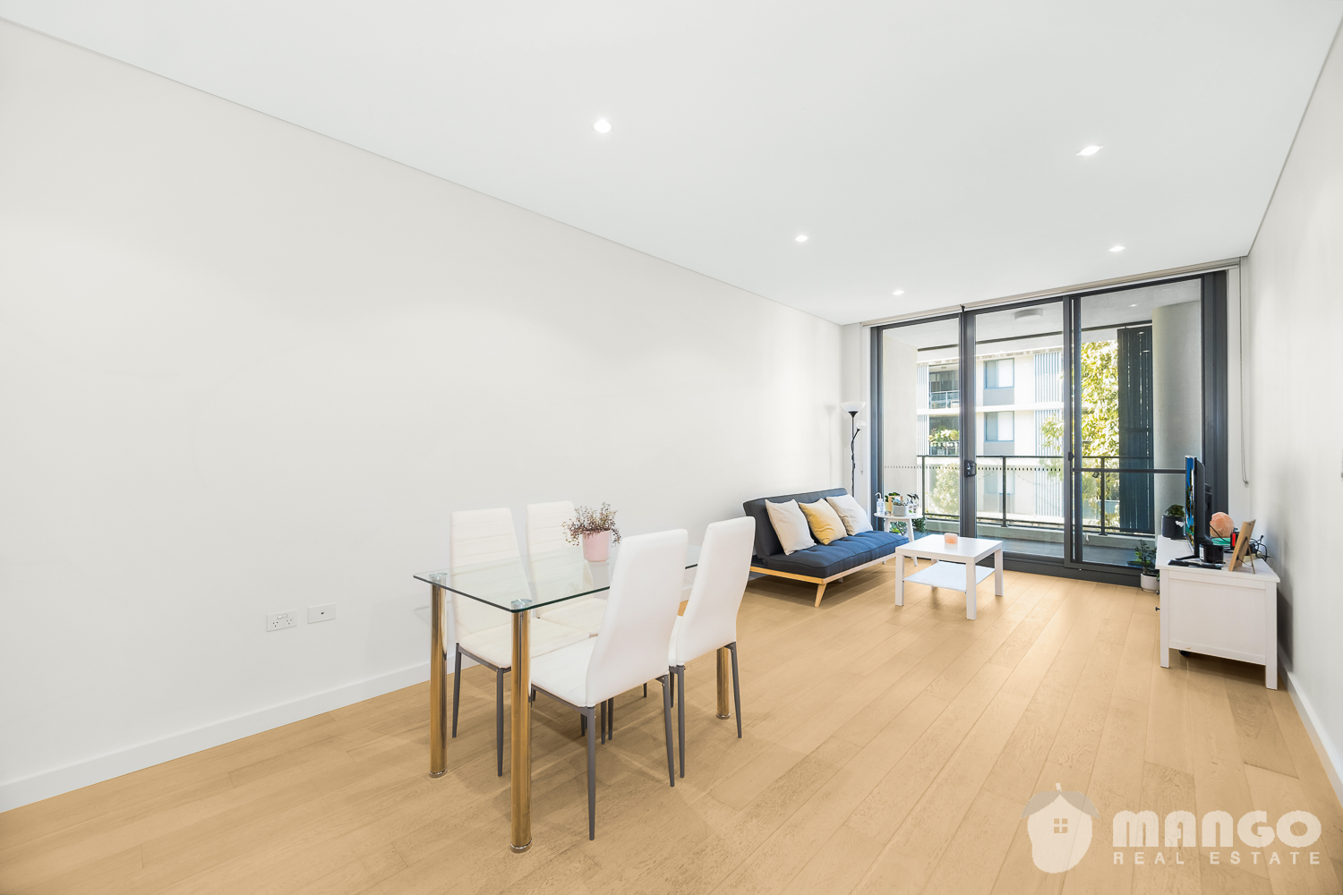 - Spacious living area with timber flooring and floor to ceiling sliding door direct access to an open view balcony