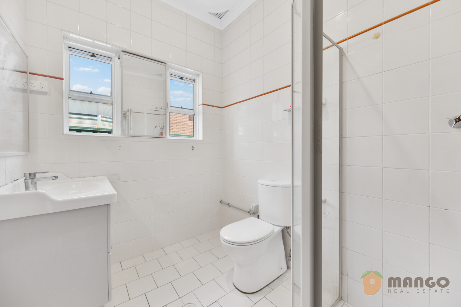 - two bathrooms with floor to ceiling tiles