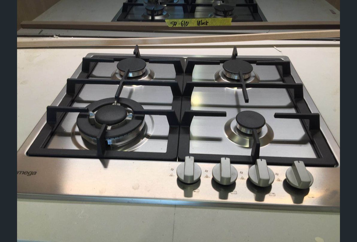 - modern kitchen with big stone benchtop island, LED lighting under rangehood and overhead cupboard, microwave, dishwasher, oven, gas cooktop etc