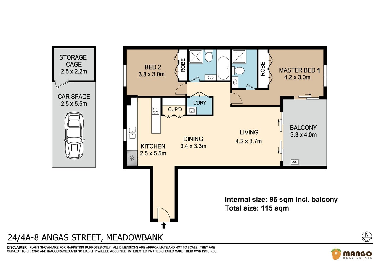- Total area: 115sqm with 96sqm internal area including balcony