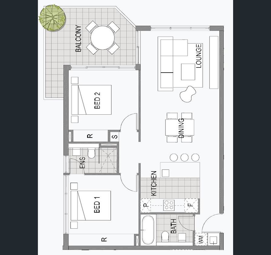 - open planned living and kitchen area with direct view and access to the entertaining balcony area